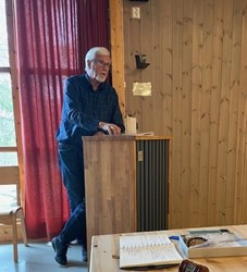 Presidenten ønsket velkommen og det er Kolbjørn Almlid som er kveldens foredragsholder, fra Krig til fred. Hun minnet om at det var 80 år siden frigjøringen i Norge.